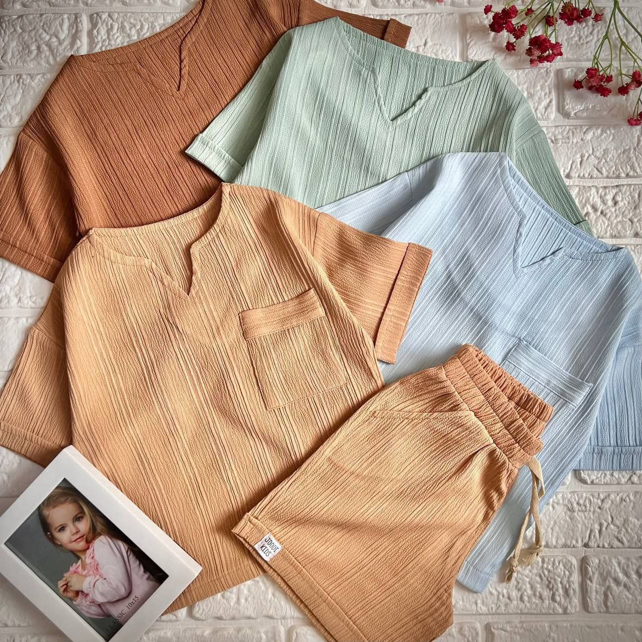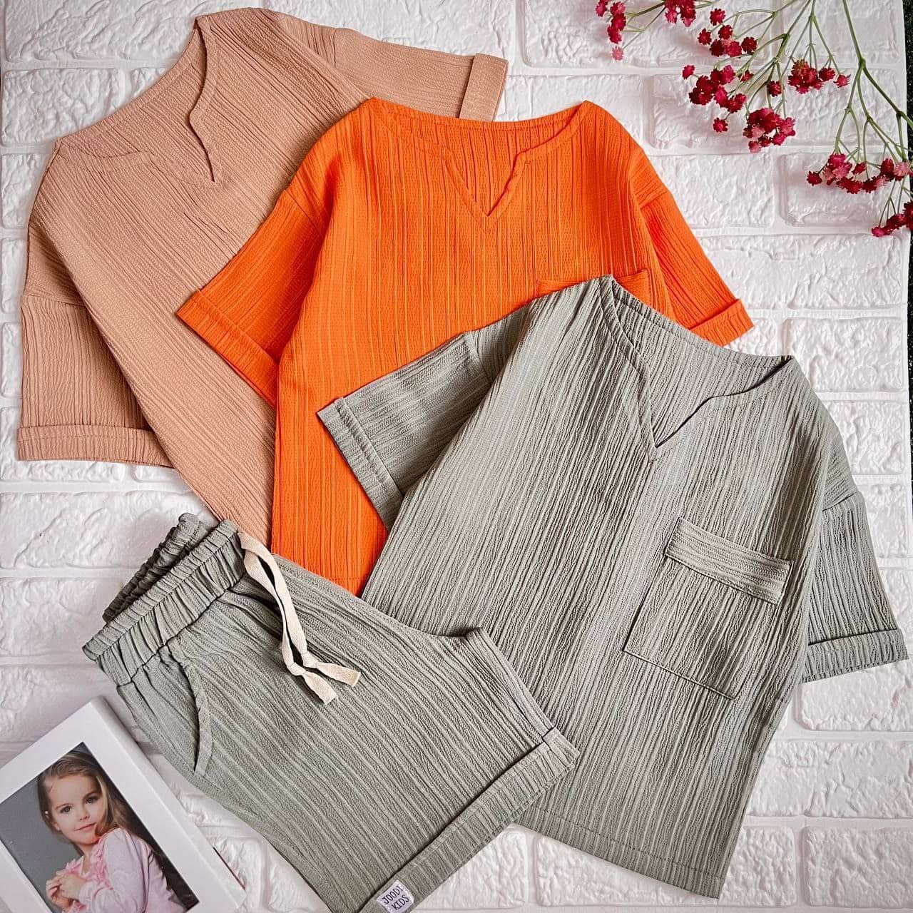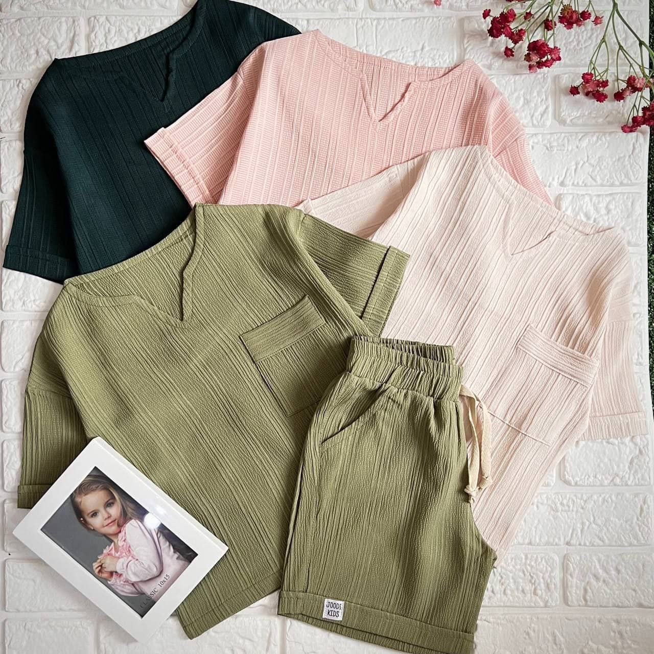 ست تیشرت شلوارک یقه کوبایی مدل آیوا کد 1030