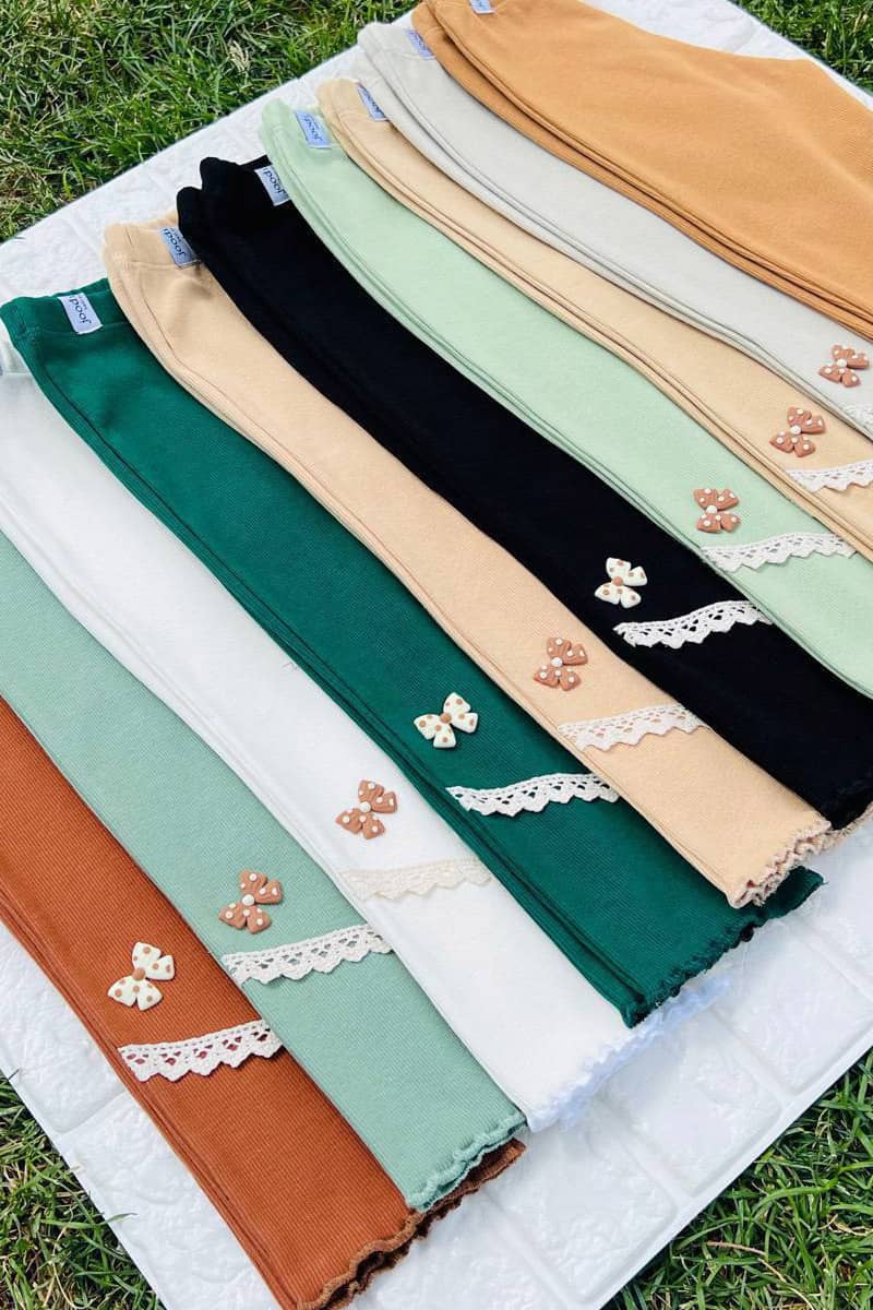 🟠 دانتل پنبه و پاپیون ها دوخته شده به شلوار